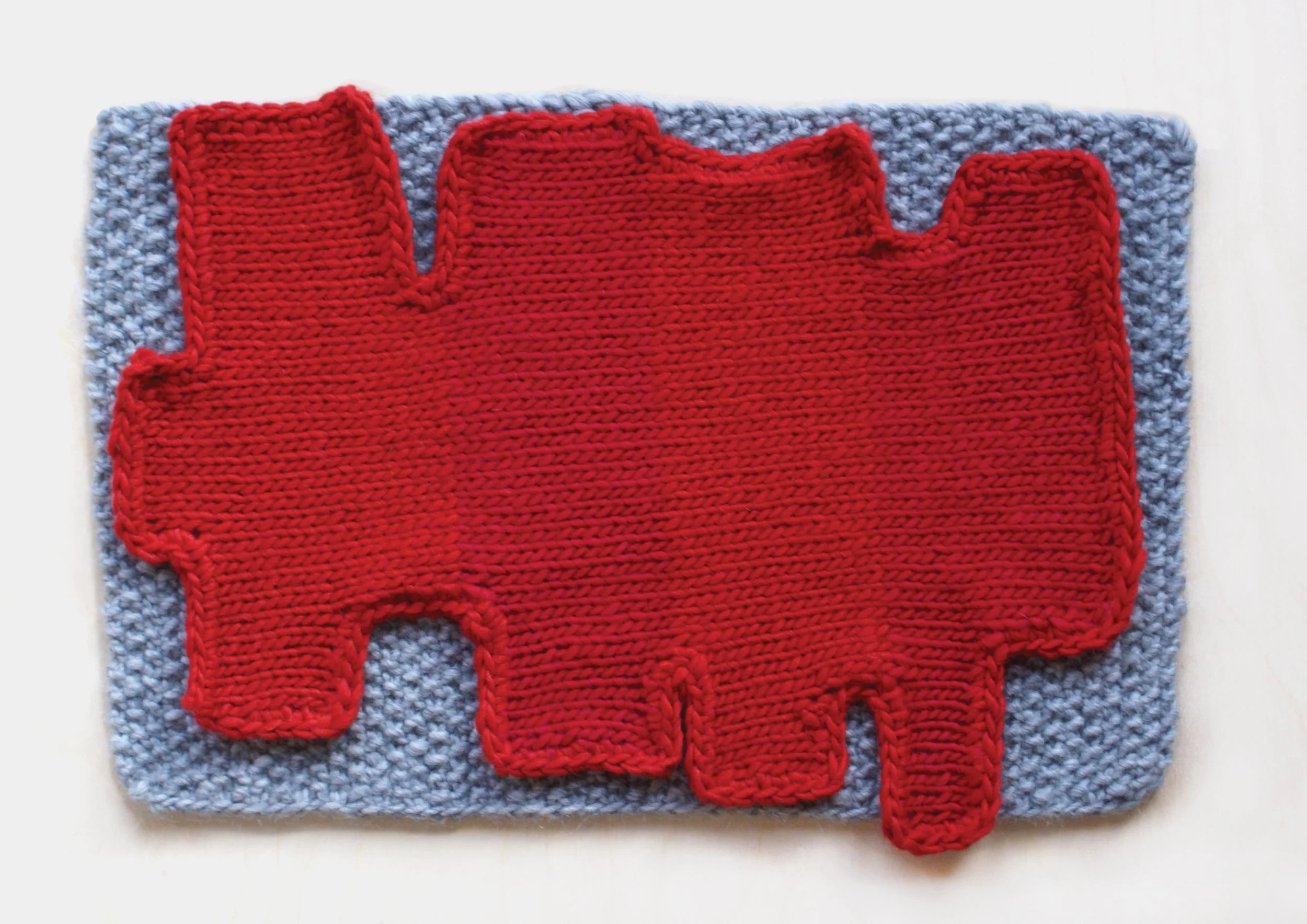 Based on a drawing made from nature—the bough of a flowering plant, for instance—Gelardi will then put it through its paces, filtering the drawing through various media and production processes to “play out in a visual way,” as she puts it, a model for both aesthetic discovery and a leaner, more efficient use of limited resources. The outcomes of this process--which can be as various as a knitted, 3D “print” (in which she employs a professional knitter to create limited edition artworks, synthesizing and reassigning accepted notions of piece work and traditional printmaking); a large-scale collage of photocopies made on a surface comprised of recycled cereal boxes and other chipboard containers; or appliqués hand-stitched on raw linen (to test the use of this venerable cloth as both a “craft” medium and a “fine art” medium, and to tweak the noses of those who remain hidebound to either camp)—are as delightful to look at as they are inspiring examples of smart, creative ways of seeing production practices evolve in response to our current needs.